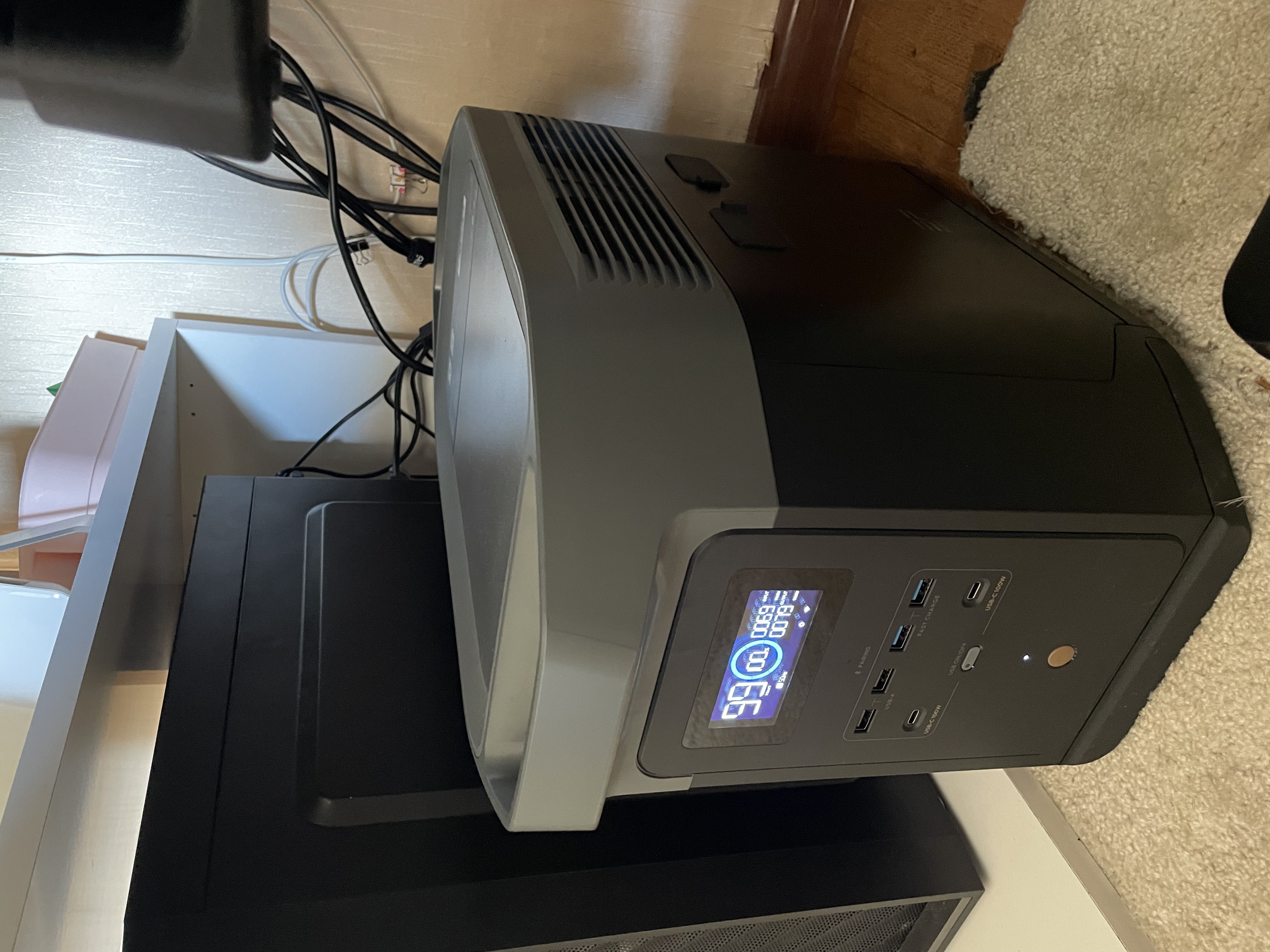 I use it as backup power for my entire apartment. It lasts for 7-8 hours during a power outage—I use the refrigerator, TV, computer, electric kettle, coffee machine, microwave, and lighting during this time. This is, of course, without overdoing it, at a normal frequency for everyday life + LED lamps in all rooms. It noticeably makes noise under a load of more than 200W and during charging, about as loud as a refrigerator. So I don't recommend placing it in the room where you sleep. Or buy the Ecoflow Delta 3—you can't hear it at all during operation unlike this model. The phone app is just perfect, using it is nothing but positive emotions. It's heavy, you can't drag it back and forth every day. Don't even think you'll be able to run across the street to charge it at a store. Large capacity Extracts powerful household appliances Quality accessory Expensive, but worth the money for me Quite noisy, better not to put in a living room |