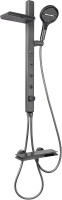 shower system, tap: thermostatic, watering can: 100 mm, modes 3, overhead shower: 202 mm, set: hand shower (shower head), tap, rack, hose, hand shower mount