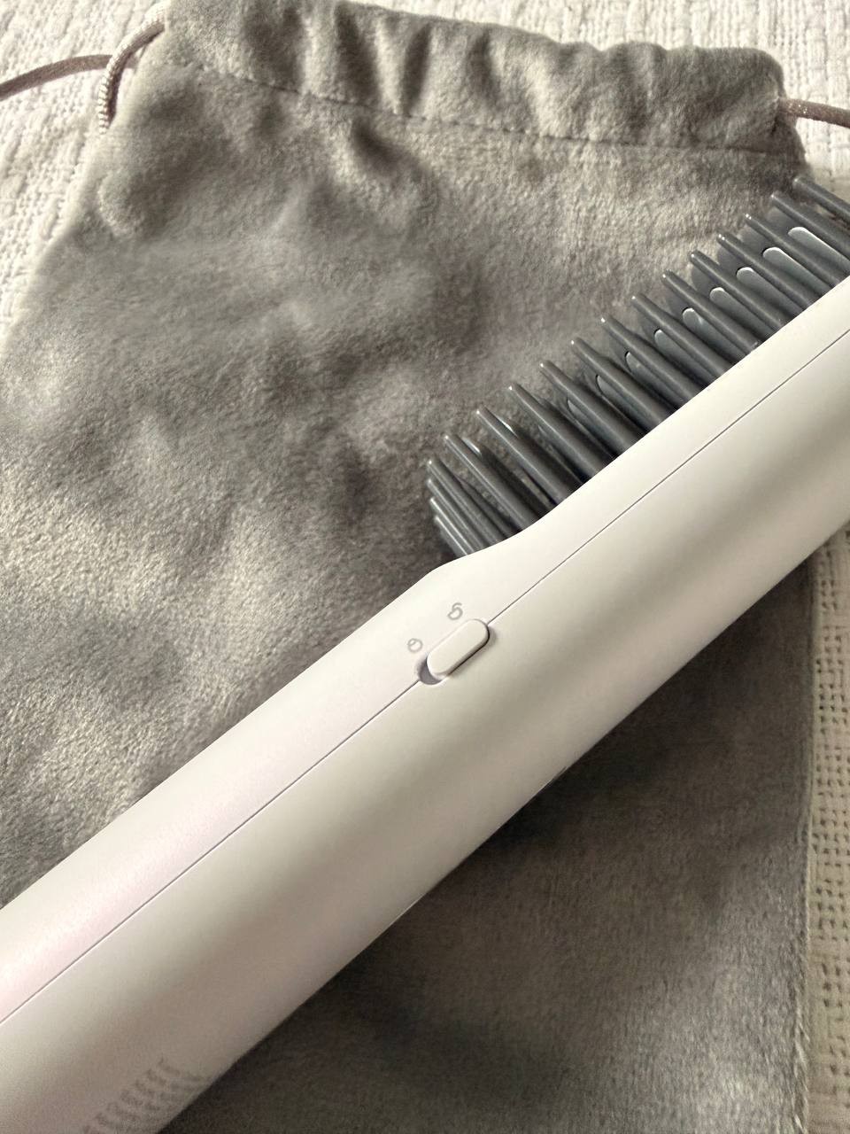 Wireless — you can use it anywhere. Large battery and fast charging via USB-C. Includes a power adapter and a convenient carrying case. Ionization — hair is smooth, soft, shiny, and doesn't get static. Three temperature settings — suitable for different hair types. Lock button — safe for travel. Combs are protected from touching hot plates — safe even for children. Compact, light, and stylish — easily fits in a bag for touch-ups anywhere. Heats up quickly, doesn't burn. White body with a pearly sheen — neat and beautiful. It may take slightly longer for very long or very curly hair. Not as powerful as salon flat irons, but perfect for home use. |