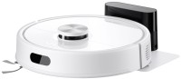 Low-cost model of a robotic cleaner from Xiaomi for sweeping and mopping. In dry cleaning mode, the dual front brushes rake debris from the peripheral areas under the bottom, where it is picked up by the turbo brush. To activate the wet wiping mode, pour 200 mL of water into a special dust collector tank and fix a nozzle with moistened microfibre under the bottom. The fluid supply is adjusted automatically.