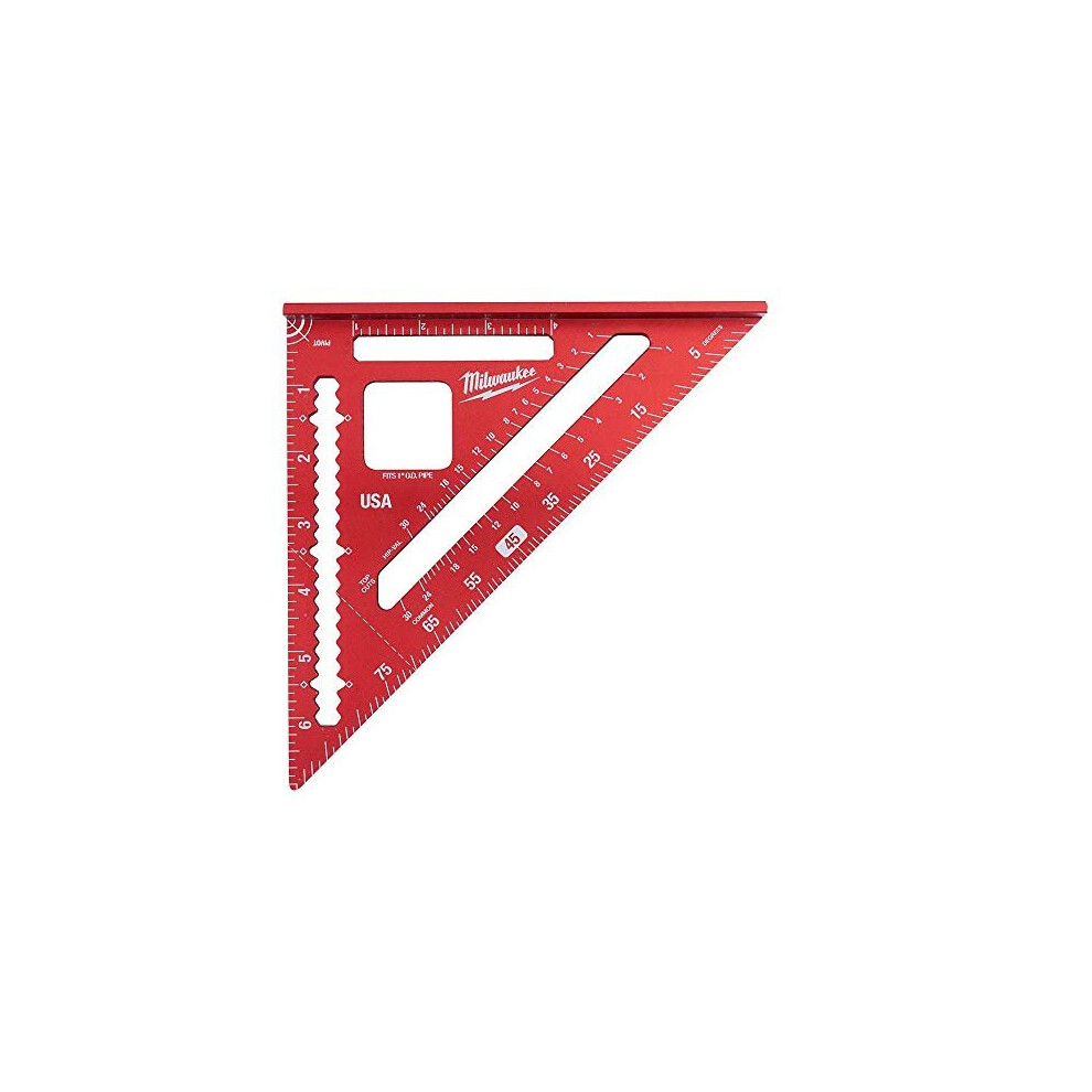 Crafted from high-quality materials, the rafter square boasts precise metric measurements, ensuring accuracy in every project. The sturdy construction of the rafter square ensures long-lasting performance, even in demanding work environments. With its compact size and lightweight construction, the Milwaukee Carpenters Rafter Square Metric is easy to carry on the go. With its durable construction, accurate measurements, and convenient design, this tool is a must-have for any carpentry task. Features & Benefits • Precision scribe notches for easy marking • High visibility laser etched markings • Pipe prop to assist in cutting pipe materials • Increased heel width for improved grip Specifications • Length: 180mm