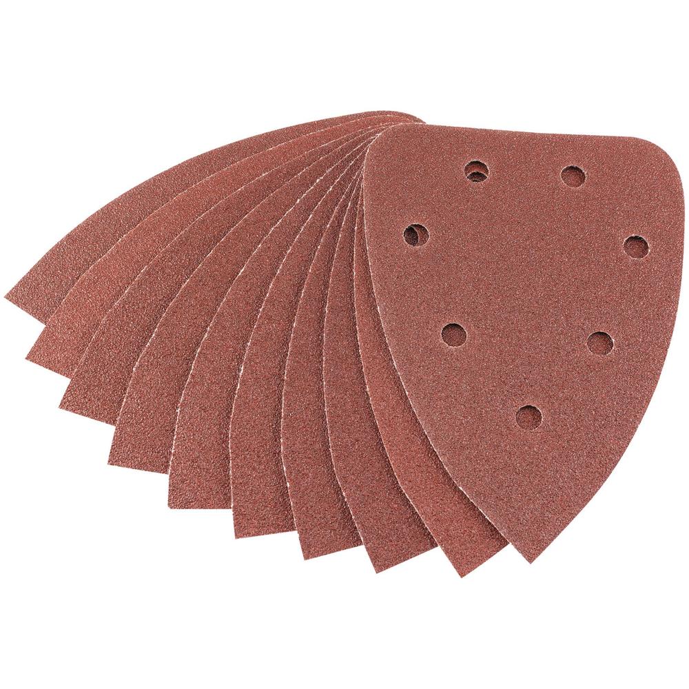 Hook and loop backed aluminium oxide abrasive sanding sheets fixed with 18 pre - punched 10mm holes. For use on Draper sanding machines and other manufacturers similar sanders. Supplied in packs of 10 (Assorted Packs - 3 x 60, 4 x 80, 3 x 120).