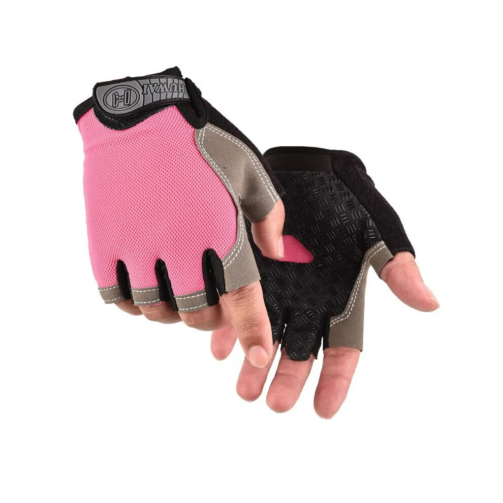 GOBYGO 1Pair Half-Finger Fitness Gloves Cycling Sports Weightlifting Workout Gloves Anti-slip Dumbbell Training Wr (Pink, S)